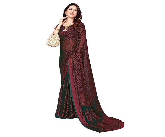 इसमें आपको बर्गेंडी के अलावा और भी कलर के ऑप्शन मिल रहे हैं। इसे पहनकर आप किसी पार्टी में या अपनी सहेली के घर भी जा सकती हैं। AKHILAM Womens Saree Price: Rs 1819.