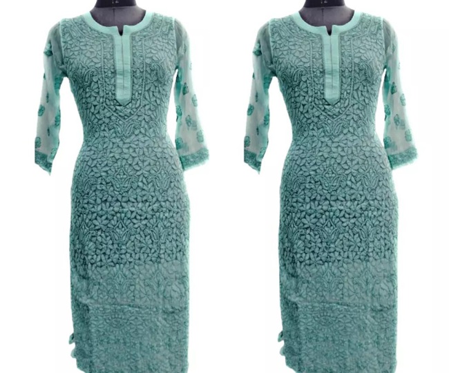 लेख में शामिल Lucknowi Chikan Kurti में अलग-अलग चिकन की कढ़ाई आपको देखने को मिलेगी। पैटर्न भी काफी डिफरेंट होगा। इन कुर्ती को पहनने पर काफी कंफर्ट का एहसास होता है। इन कुर्ती में नेक का डिजाइन, कलर पैटर्न, लेंथ आदि सभी डिफरेंट मिलते हैं। इनकी सबसे खास बात आपको ये लगेगी, कि गले पर हैवी वर्क मिलता है, जो पूरी कुर्ती में जान डाल देता है। दाम की चिंता ना करें, क्योंकि यहां कीमत सबसे कम है।