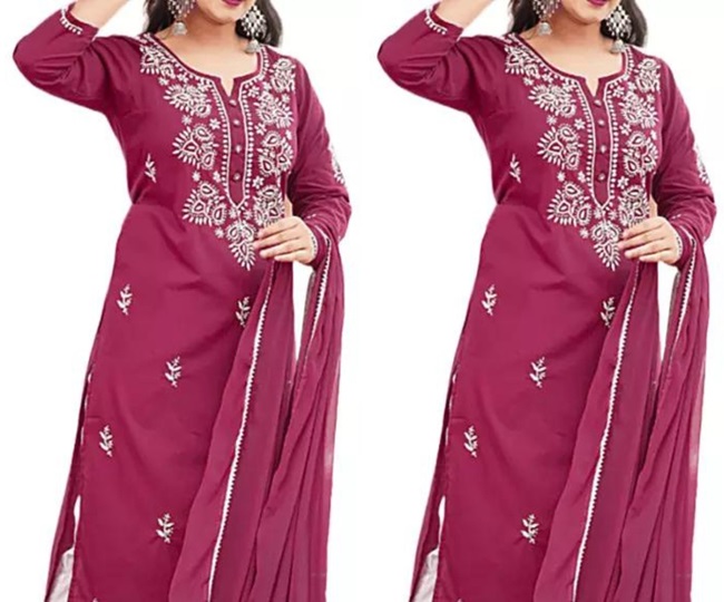 काफी हैवी वर्क का काम इस सेट में देखने को मिलेगा। स्किन फ्रेंडली कपड़ा होने की वजह से इसे पूरे दिन कैरी किया जा सकता है। इस कुर्ता सेट को आप किसी खास ऑकेजन के लिए चुन सकती हैं। इसे ऑफिस में पहन सकती हैं। कहीं बाहर घूमने जाने के लिए इसका चुनाव आसानी से कर सकती हैं। Lucknowi Kurti Price: Rs 1879.