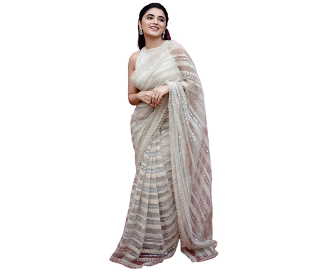 ऑफ व्हाइट इस साड़ी की जितनी तारीफ की जाए उतनी ही कम है। अगर आपको ज्यादा सोबर कलर पसंद है, तो यह Best Party Wear Saree है। इसका फैब्रिक बहुत ही सॉफ्ट है।