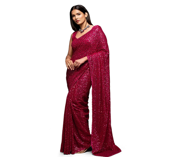 हॉट पिंक में आने वाली यह साड़ी बहुत ही खूसबूरत है। इस पर आपको सीक्वेंस वर्क मिलता है, जो पार्टी के लिए बेस्ट हैं। इस Saree Online को आप आराम से कैरी कर सकते हैं।