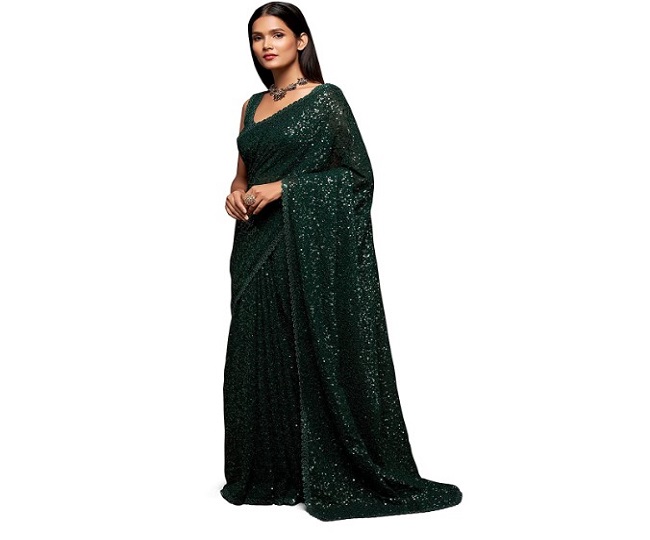 Zeel Clothing Women's Sequins Work Saree with Blouse