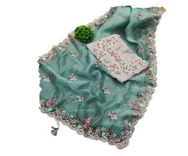इस Best Saree For Wedding का ओर्गानेजा फैब्रिक है, जो आज कल काफी ट्रेंड में है। यह एम्ब्रॉयडरी थ्रेड वर्क के साथ आती है, जो बहुत ही खूबसूरत है। Infloura Women's Saree Price: Rs 1999.