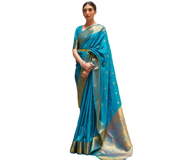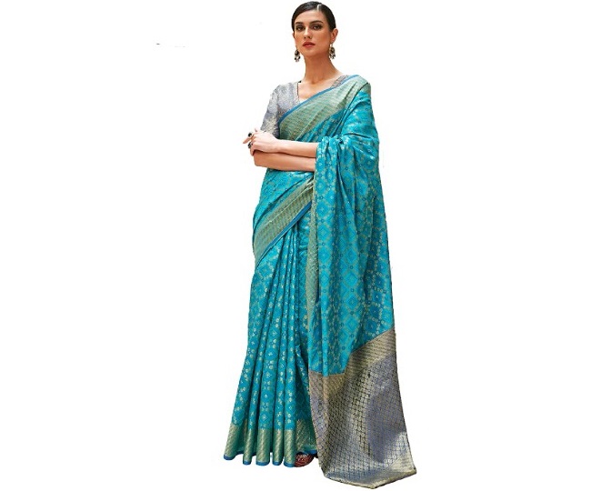 यह ब्लू कलर की साड़ी बहुत ही खूबसूरत है। फेस्टिवल, कल्चरल इवेंट्स या किसी वेडिंग फंक्शन पर आप इस Silk Saree Online को पहन सकती हैं।