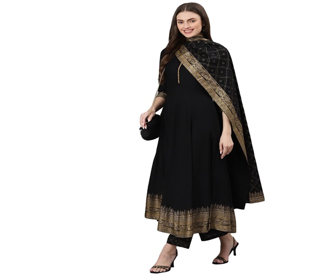 इन ब्लैक सूट के साथ आप एक पंजाबी कूड़ी का लुक भी दे सकती है और किसी पार्टी-फंक्शन के लिए भी तैयार हो सकती है। सिम्पल-सोबर वाले ये ब्लैक सूट इस समय काफी चर्चा में चल रहे है। ये Black Suit Women's में 5 बेस्ट ऑप्शन दिए गए है, साथ ही इनकी लेंथ भी लंबी है, जो फ्लोर टच का लुक देती है। सभी ब्लैक सूट का डिजाइन और प्रिंट अलग-अलग है, जिसे आप अपनी पंसद के साथ चुन सकती हैं। यहां देखें Women's Black Suit की कीमतें।