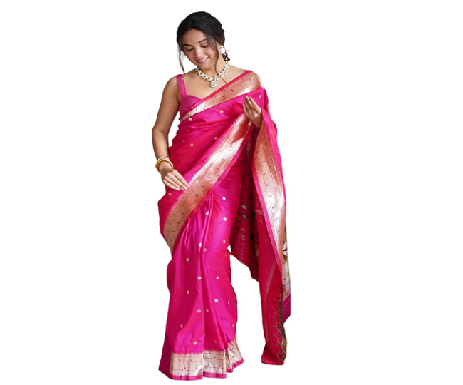 डार्क पिंक कलर की यह साड़ी बहुत ही खूबसूरत है। इसको पहनकर आपको बहुत ही अट्रैक्टिव लुक मिलेगा। यह सॉफ्ट Silk Saree मैचिंग ब्लाउज पीस के साथ आती है।