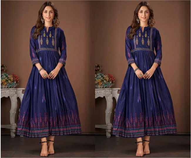 घुटने और कमर तक की कुर्ती के अलावा इस लंबी लेंथ वाली कुर्ती की बात करते है, जो मल्टी पर्पस के अनुसार वियर की जा सकती है। इस कुर्ती का घेराव अनारकली डिजाइन की तरह है, जिसे अंदर आप पजामी पहन भी सकती है और इसे सिंगल भी पहन सकती है।
