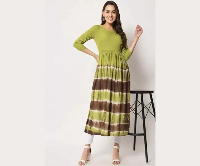 ग्रीन कलर की कुर्ती पर की गई मल्टीपल कलर की कारीगरी भी आपको काफी पसंद आएगी, जो अट्रेक्टिव लुक भी देगी। अगर आप अपनी अलमारी में कुछ नया और फैशनेबल जोड़ना चाहती है, तो इससे बढ़िया ऑप्शन नहीं मिलेगा। इस कुर्ती पर फेब्रिक पेंटिग का काम किया गया है। इसकी कीमत ऑनलाइन आपको काफी सस्ती पड़ेगी।
