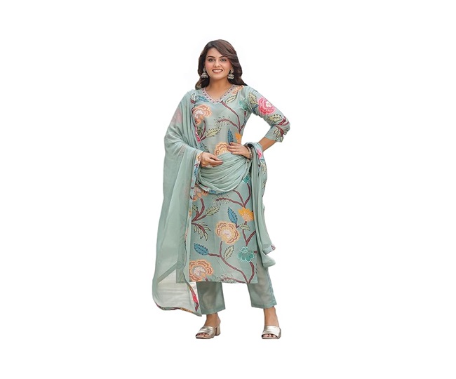 3. GoSriKi Straight Cotton Kurti Design with Pant & Dupatta