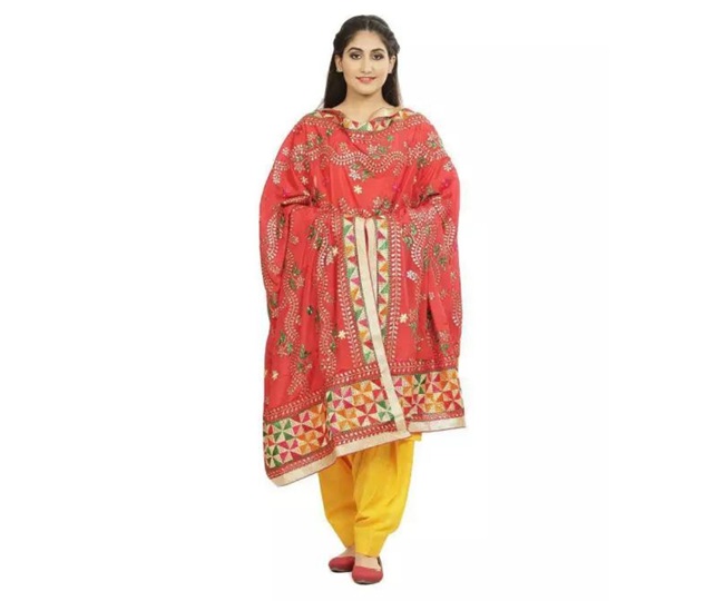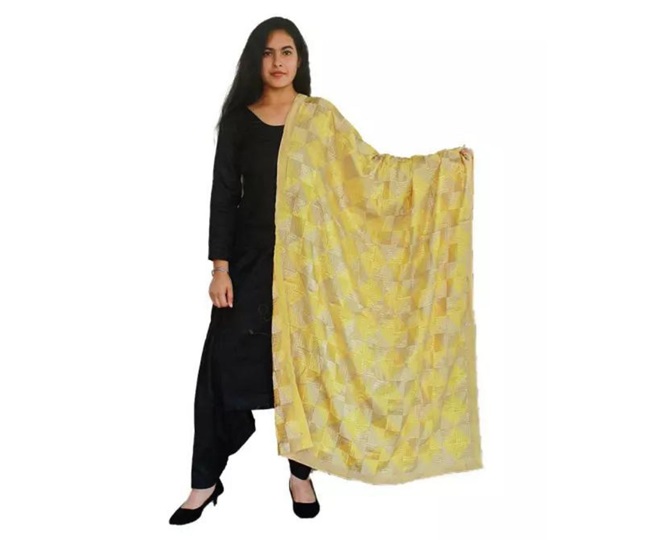 पंजाब में सलवार सूट सिम्पल होते है और उसका दुपट्टा हैवी वर्क के साथ कैरी किया जाता है, जो दिखने में काफी स्टाइलिश और यूनिक लुक पेश करता है। ऐसे में येलो कलर का सिम्पल सूट आपको मिल रहा है, जिसका दुपट्टा फुलकारी डिजाइन से लैस है।