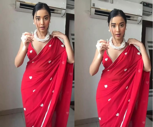 इस रेडी टू वियर साड़ी पर व्हाइट कलर के हार्ट डिजाइन बने हुए है, जो साड़ी की शोभा बढ़ा रहा है। इस लाइटवेट साड़ी का टेक्सचर काफी हल्का और कॉटन का है, जो पूरे दिन बिना किसी परेशानी के कैरी किया जा सकता है। साड़ी का ब्लाउज अनस्टिच है, जिसे आप अपने डिजाइन के अनुसार सिल्वा सकती है। Ready To Wear Saree Price: Rs 1500.