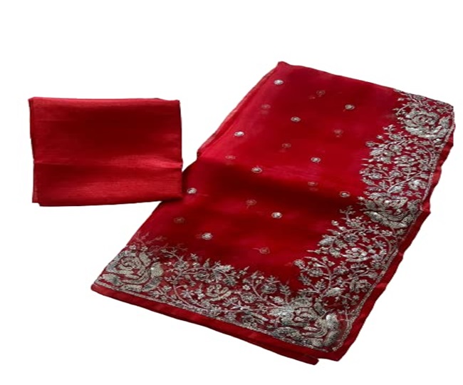 2. Silk Organza Saree Fabric With Beautiful Embroidery