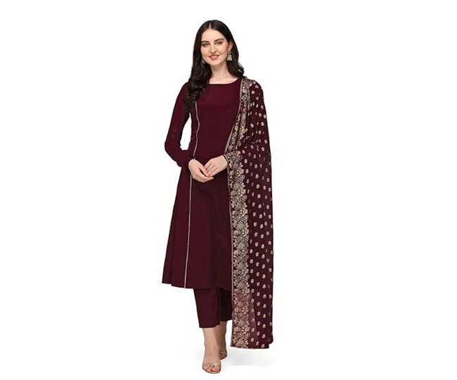 मैरून रंग में मिल रहा कुर्ता सेट दिखने में बहुत सुंदर है जिसे पहनने के बाद आपको बढ़िया लुक मिलता है। इसे आप किसी भी फंक्शन, इवेंट, शादी या पर्टी के लिए आराम से कैरी कर सकते है। सेट में अपर, बॉटम वीटर और दुपट्टा मिल रहा है। इसका कुर्ता स्ट्रेट फिट में मिलता है जिस पर जॉर्जेट के दुपट्टा मिलता है जिसे स्टाइल करने पर काफी अच्छा लुक आता है।