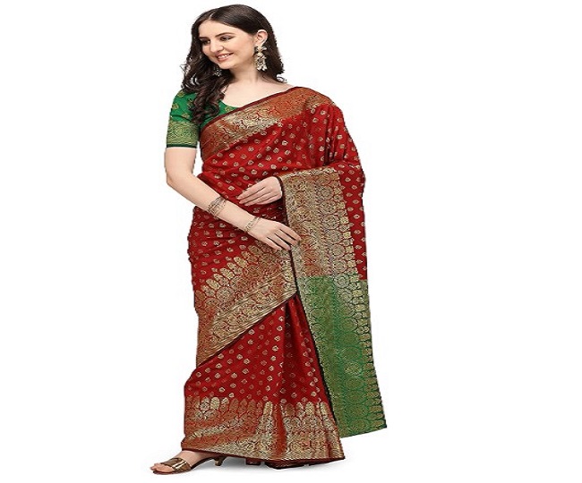 यह साड़ी 6.3 मीटर लंबी है और इसके साथ आपको मैचिंग ब्लाउज मिलता है। इस साड़ी का फैब्रिक आर्ट सिल्क है। यह पहनने पर आपको बहुत ही मॉर्डन लुक देती है। Shiv Textiles Womens Saree Price: Rs 999.