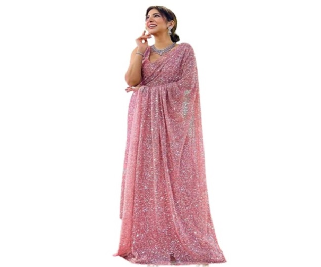 पिंक कलर की यह साड़ी आपकी फेवरेट हो सकती है। इस Women's Sequins Saree की खूबसूरती देखती ही बनती है, जो कहर ढा सकती है। इस साड़ी को पहनकर आप किसी भी फंक्शन की जान बन सकती हैं।