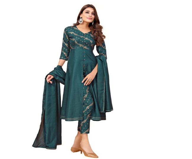 इनको लेने के लिए यहां बताई गई कुर्ता सेट की लिस्ट पर नजर डाल सकती हैं। ये Women's Silk Kurti बहुत ही अट्रैक्टिव पैटर्न में आ रहे हैं, जिनको पहनने पर आपको काफी मॉडर्न और ट्रेंडी लुक मिलेगा। इन सिल्क कुर्ता सेट की बात की जाये, तो ये Womens Fashion में बने हुए हैं और आगे भी बने रहेंगे। इन्हें अपनी वार्डरॉब में शामिल करने के लिए यहां दी गई लिस्ट को चेक कर सकती हैं। इन सिल्क कुर्ती में हर दिन नए-नए डिज़ाइन आते रहते हैं, जो फंक्शन या पार्टी में बहुत ही अच्छा लुक देते हैं। इन Silk Kurtis For Women में आपको कुर्ता, पैंट और दुप्पटा मिलता है। नजर डालते हैं इन सिल्क कुर्ते सेट पर।