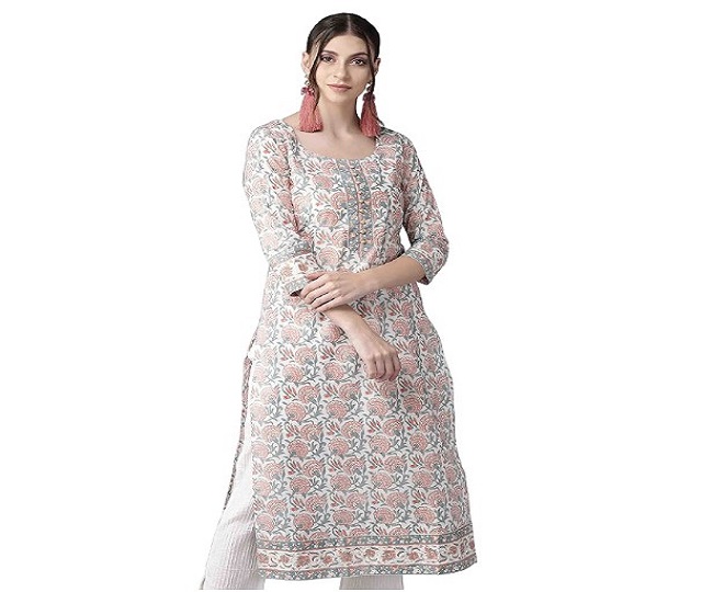 यह ऑफ व्हाइट कलर की कुर्ती बहुत ही पॉपुलर है। कॉटन फैब्रिक वाली यह Ladies Kurta पहनने पर गजब का स्टाइल देता है। गर्मियों में यूनिक और ट्रेंडी लुक के लिए इस Kurtis For Women Online को जरूर ट्राई करें।