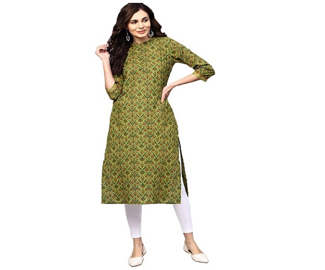 गर्मियों में अगर आपको चमकीले कपड़े पहनना पसंद नहीं हैं, तो इस प्रिंटेड कुर्ती को ट्राई कर सकती हैं। इस Ladies Kurta को आप जींस या लेगिंग के साथ पेयर कर बहुत ही अच्छा लुक क्रिएट कर सकती हैं।