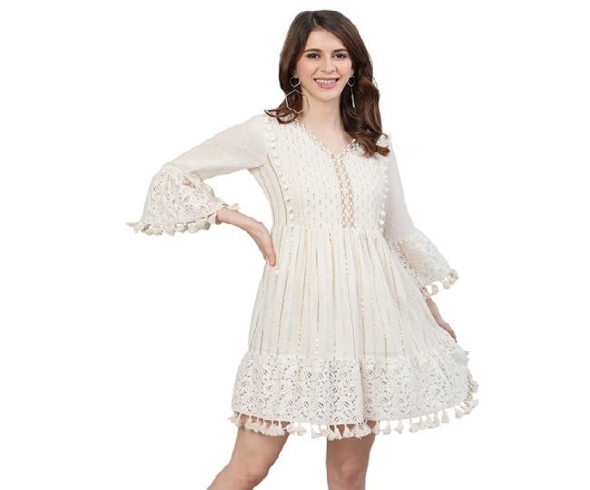 इस Ladies Summer Dress को आप फ्लैट या हील के साथ पेयर कर बहुत ही क्लासी और एलेगेंट लुक पा सकती है। इस Amazon Dress में आपको बॉटम और स्लीव पर पोम्प-पोम्प मिलते हैं। Ishin Women's Summer Dress Price: 989.