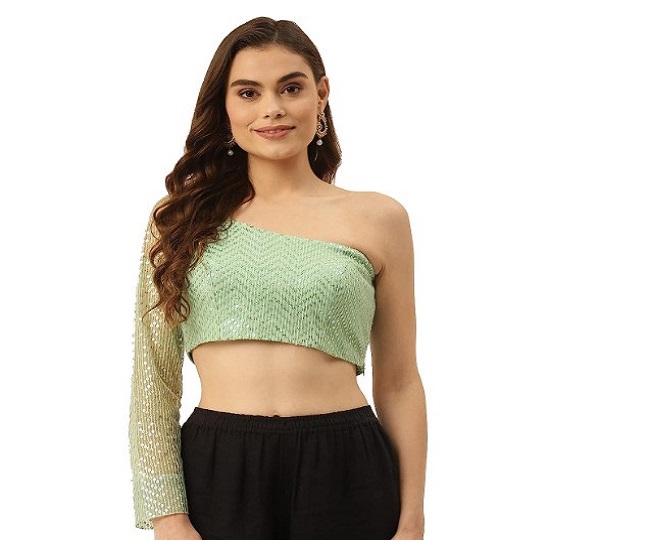 इस पर आपको सीक्वेंस वर्क मिल रहा है, वहीं इसका कलर भी बहुत ही अट्रैक्टिव है। यह ब्लाउज साड़ी, लहंगे या लॉन्ग स्कर्ट के साथ पेयर करने पर Tamannaah Bhatia जैसा स्टाइलिश और गॉर्जियस लुक देगा। Niharikaa New Blouse Design Price: Rs 1800.