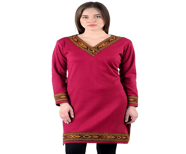 यह Long woolen kurti design पहनने में बहुत गर्म है। इसी के साथ यह स्किन फ्रेंडली भी है। इन सर्दियों में इसे पहनने के बाद आपको बेहतरीन लुक मिलने वाला है। इसे आप लेगिंग के साथ पेअर कर सकती हैं। Matelco Woolen Kurti Price : Rs 949 .