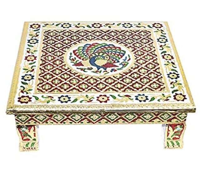 4. Handicraft Aluminum Wooden Pooja Chowki