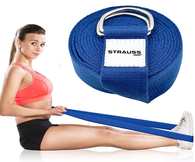 यह टूटती नहीं है या अपना आकार नहीं खोती है। इसमें एडजस्टेबल डी-रिंग की सुविधा है, जो स्ट्रेचिंग, योग, थेरेपी, वर्कआउट के लिए आदर्श है। Strauss Yoga Strap Price: Rs 209.
