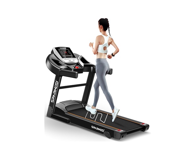 इसमें लगा LED मॉनिटर डिस्टेंस,स्पीड, टाइम और बर्न की गई कैलोरी के बारे में बताता है। मशीन में म्यूजिक स्पीकर भी लगा है, जिससे आप म्यूजिक को एन्जॉय कर सकते हैं। Sparnod Fitness ट्रेडमिल का प्राइस: रु. 17,498.