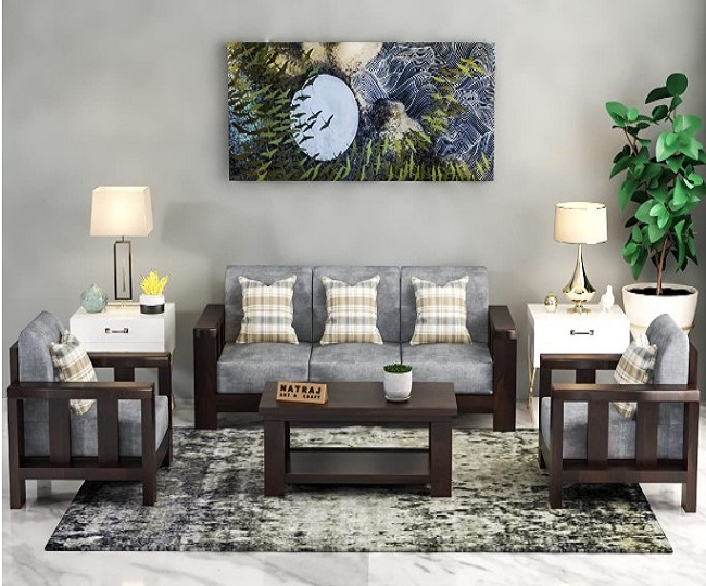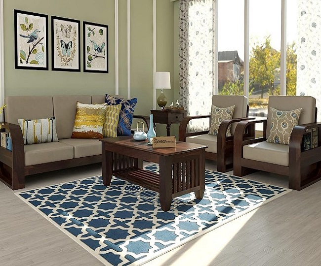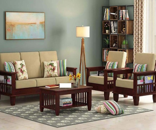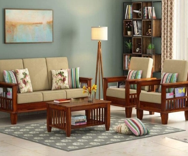 इस Sofa Set Design के नीचे काफी स्पेस मिलता है, जिससे साफ-सफाई करना काफी आसान हो जाती है। हनी फिनिश के साथ आने वाला यह सोफा सेट ट्रेडिशनल लुक के लिए अच्छी च्वॉइस है। NKF Sofa Set Price: Rs 24999.