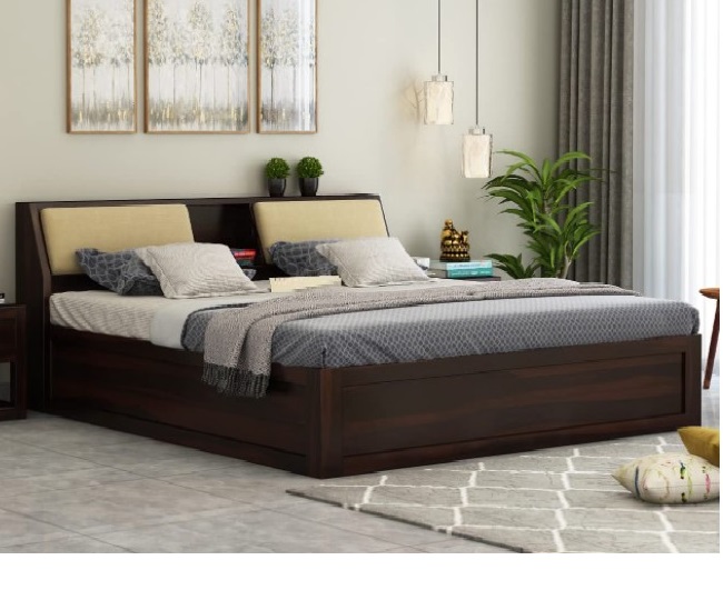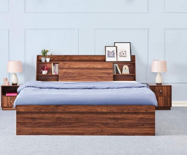 इस बेड की साइड में बहुत ही खूबसूरत डिजाइन बना हुआ है, जो बहुत ही अट्रैक्टिव है। यह Wooden Bed Design स्टोरेज के साथ आता है, जिसमें आप सामान रख सकते हैं। Wakeup Bed Price: Rs 35399.