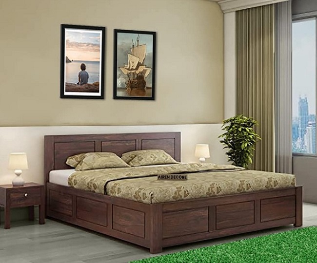 इस ट्रेडिशनल डिजाइन के बेड में आपको स्टोरेज का ऑप्शन मिलता है, जिसमें आप बिस्तर या अन्य सामान रख सकते हैं। यह लो हाइट वाला Box Bed Design है, जिसकी बॉडी वाटरप्रूफ है और प्लाई की क्वालिटी बढ़िया है। AIREN DECORE Wooden Bed Design Price: Rs 24999.