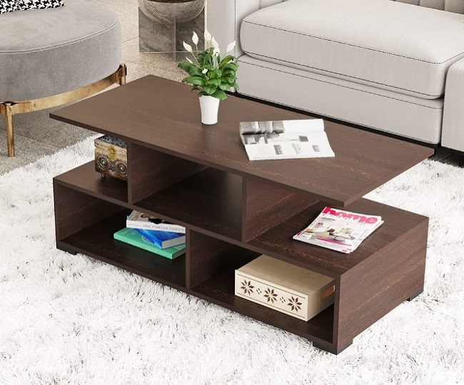 लकड़ी से बनी यह सेंटर टेबल आयताकार शेप में आती है। इस Center Table Design के साथ आपको मल्टी लेवल स्टोरेज का ऑप्शन मिलता है, जिसमें आप डेकोरेशन और अन्य सामान रख सकते हैं। इसको आप मल्टीपर्पज यूज कर सकते हैं।