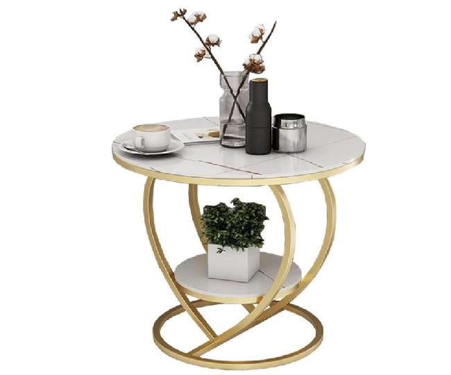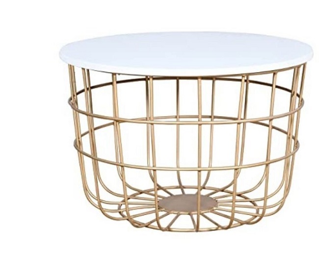सफेद-टोन फिनिश किसी भी लिविंग रूम के लिए एकदम सही मैच करेगा। इस Modern Centre Table Design में आपको गोल्डन कलर के अलावा और भी कलर के ऑप्शन मिल रहे हैं। Priti- Round Coffee Table Price: Rs 2969.