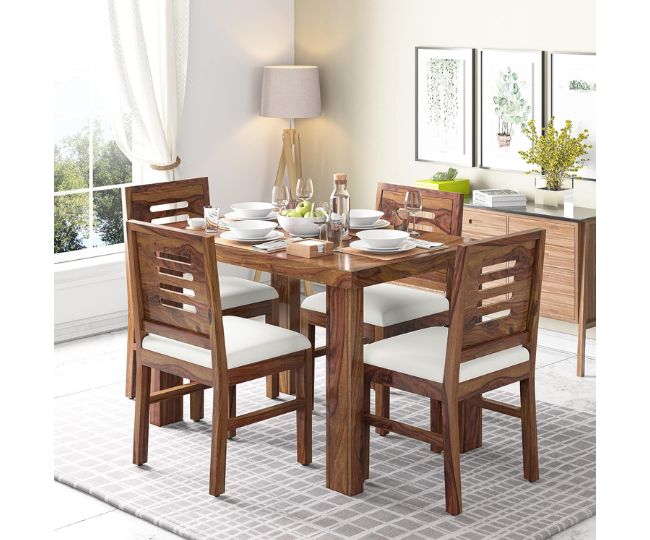 यहां आपको स्टाइलिश और मॉडर्न डिजाइन वाली 4 सीटर Dining Table Set के बारे में बताया जा रहा है, जिन्हें बनाने में शीशम की लकड़ी से बनाया गया है, जिससे यह लंबे समय तक खराब नहीं होती है और ना ही दीमक लगने का खतरा होता है।