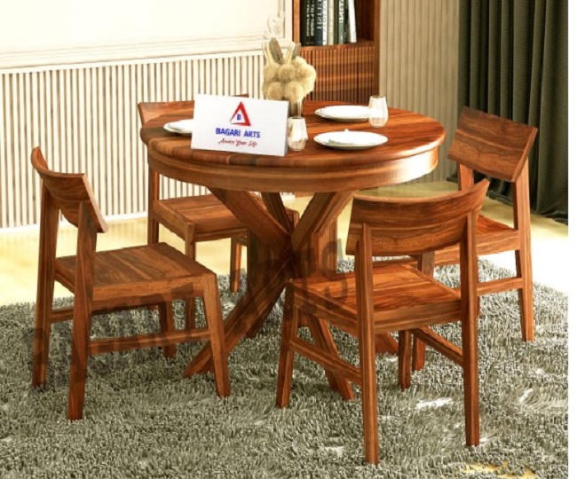 5. BAGARI ARTS Teak Wooden 4 Seater Round Dining Table