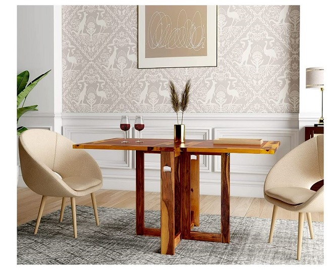 इस बजट फ्रेंडली टेबल का डिज़ाइन बहुत ही यूनिक है। इस Dining Table Set को आप फोल्ड कर सकते हैं, जो बहुत कम जगह लेती है।