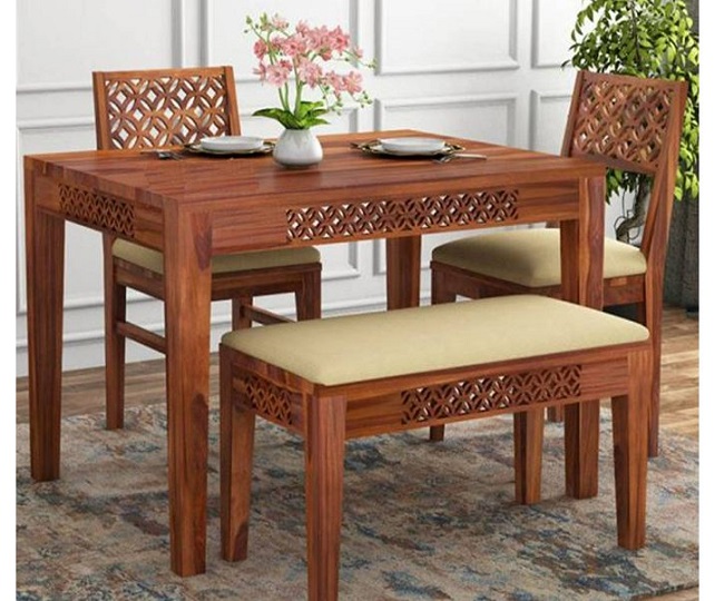 इस Dining Table Set के साथ आपको 2 चेयर और एक बेंच मिलती है, जिनकी शीट पैडेड है, जो बैठने में बहुत ही कम्फर्टेबल है। BN Furniture Dining Table Price: Rs 15999.