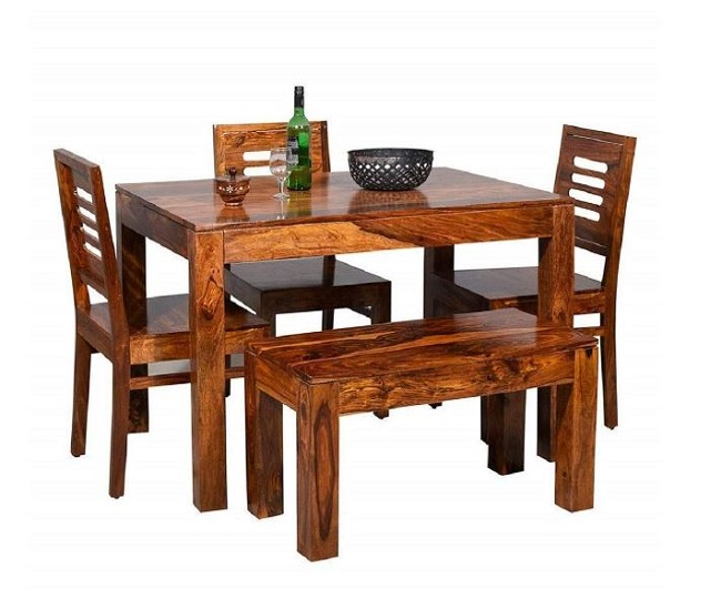 यह Dining Table 4 सीट की कैपिसिटी के साथ आती है। इसमें 3 चेयर और एक बेंच मिलती है। यह डाइनिंग टेबल लकड़ी से बनी हुई है, जो लम्बे समय तक चलती है।