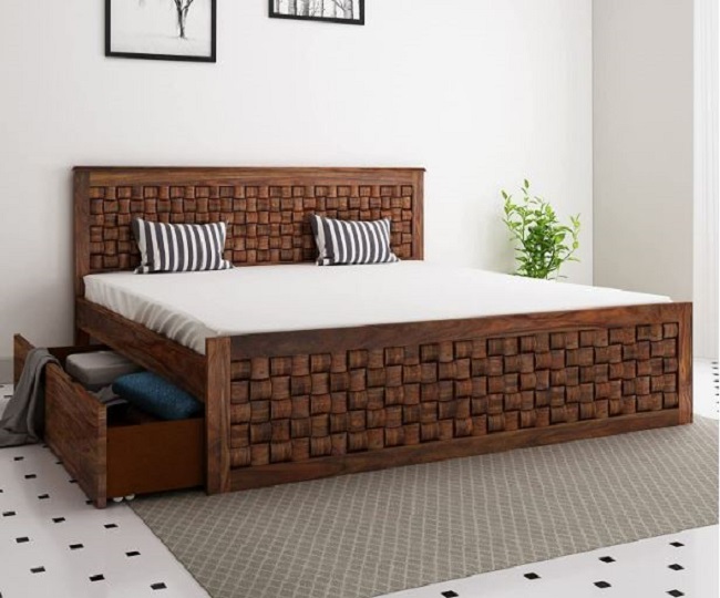 यह डबल बेड शीशम की लकड़ी से बना हुआ है, जो बहुत ही टिकाऊ और मजबूत है। Shri Mintu's Bed Price: Rs 32999.