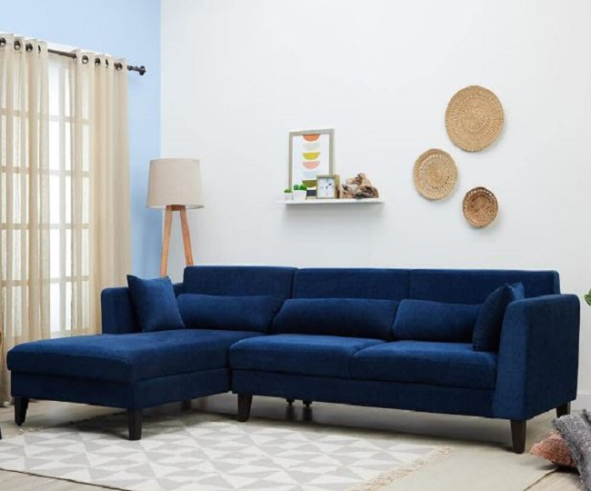 Adorn India Chandler L Shape Sofa Set (Blue)