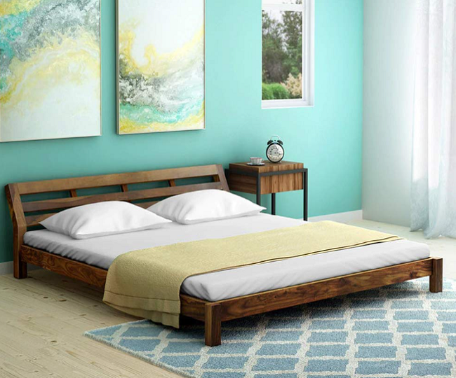 4. Sheeshamwallah Wood Low Height Queen Size Bed