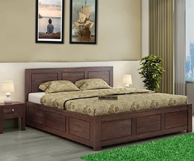शीशम की लकड़ी से बना यह Box Bed Design सालों तक चलेगा। साथ ही यह सोने में भी काफी कम्फर्टेबल है। इस बेड की साइड में बहुत ही खूबसूरत डिजाइन बना हुआ है, जो बहुत अट्रैक्टिव है। AIREN DECORE Queen Bed Size Price: Rs 24449.