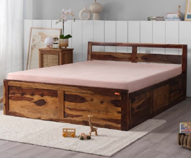 ये बेड आज कल बहुत ही ट्रेंड में हैं और इन Furniture की मांग में भी काफी बढ़ोतरी देखने को मिली है। ये बेड शीशम और इंजीनियरिंग लकड़ी से बने हैं, जिससे इन पर दीमक भी नहीं लगती है। ये Queen Bed Size आपके नार्मल साइज के बेडरूम में आराम से फिट हो जायेंगे। इसके अलावा इनमें आपको स्टोरेज का भी अच्छा ऑप्शन मिलता है।