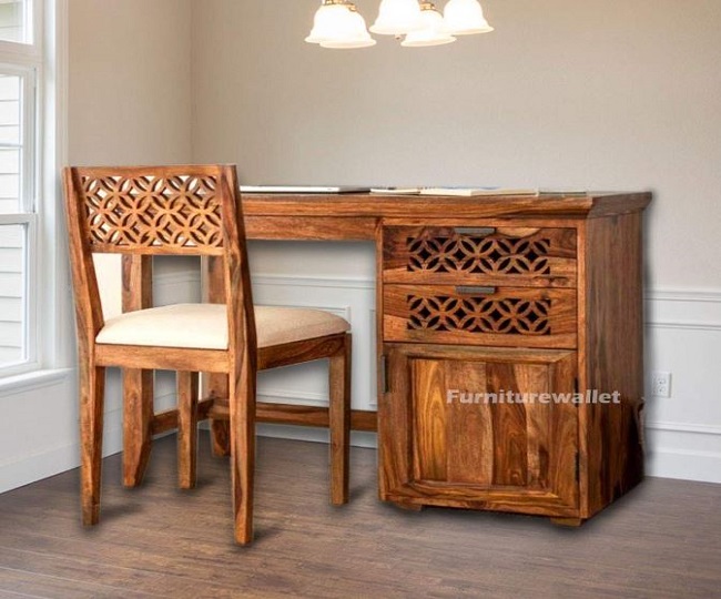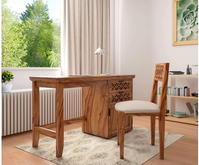 यह शीशम की लकड़ी से बनी हुई मजबूत स्टडी टेबल है। इसके साथ आपको एक चेयर भी मिलती है, जिसकी पैडेड शीट है। यह Study Table With Chair बैठने पर बहुत ही कम्फर्टेबल और स्पेसियस शीट है।