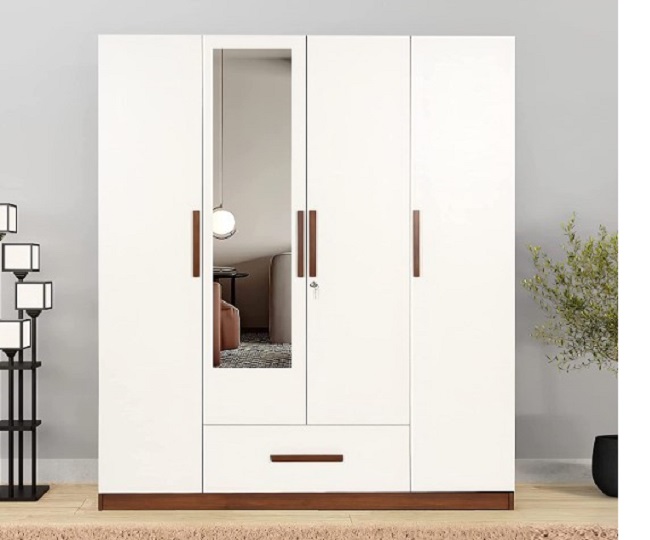 यह 4 डोर के साथ आने वाली बहुत ही बढ़िया अलमारी है। इस Wooden Wardrobe में आपको व्हाइट कलर का फिनिश मिलता है। यह वार्डरोब मिरर के साथ आती है।