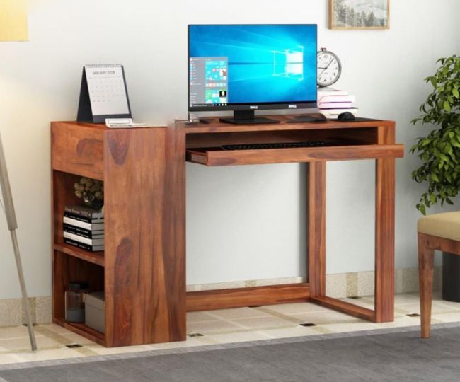 यह स्टडी टेबल छोटो और बड़े दोनों कमरे के लिए बेस्ट है। यह शीशम की ठोस लकड़ी से बना होता है, जो लंबे समय तक खराब नहीं होते हैं। इसकी मैट फिनिश इसे क्लासिक लुक देती है। इसमें आपको कीबोर्ड ट्रे भी मिलता है, जिस पर आप कंप्यूटर का कीबोर्ड आसानी से रख सकते हैं।