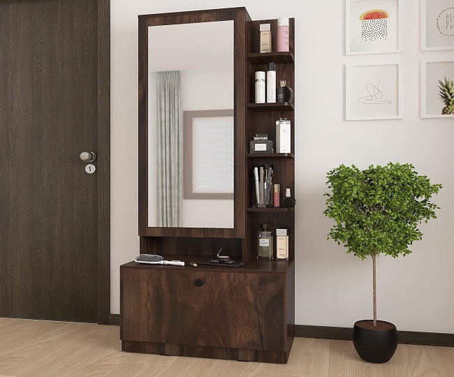 यह Dressing Table Design कम स्पेस में फिट हो जाता है, इसका हल्का वजन कहीं भी रखा जा सकता है। साथ ही ग्लोसी लुक में आप इसे काफी यूनिक तरह से सजा सकते हैं। Dressing Table Design Price: Rs 4,599.