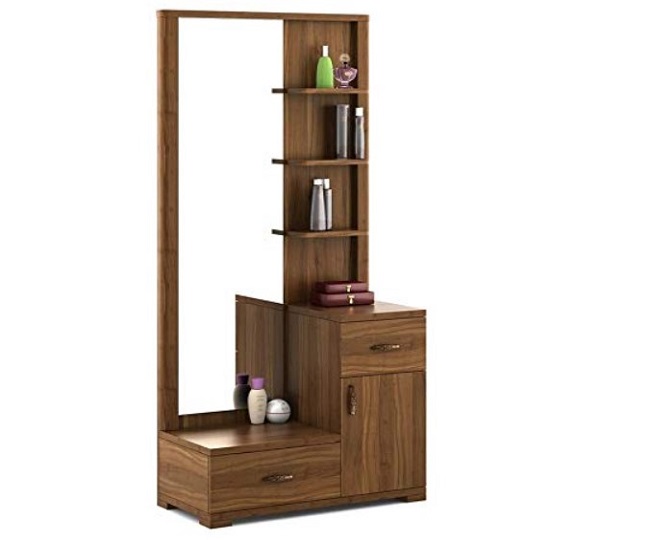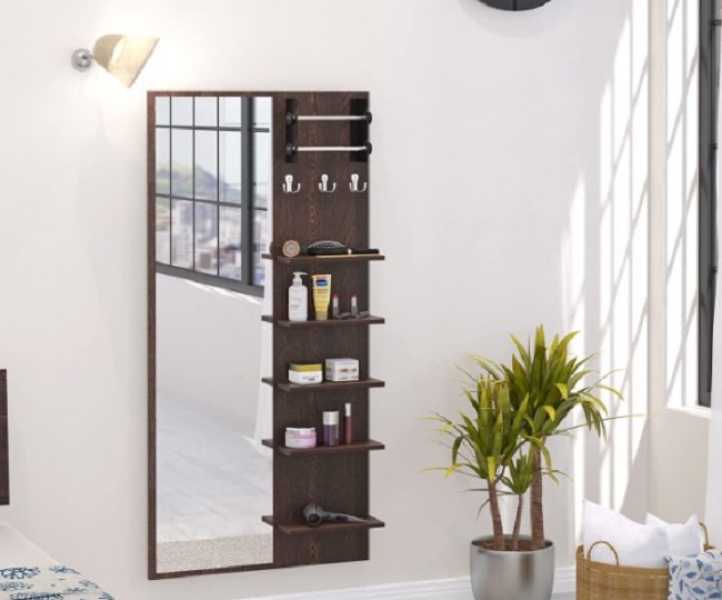 मॉडर्न स्टाइल में आने वाली यह ड्रेसिंग टेबल आपके रूम के लुक को इन्हैंस कर देगी। इस Dressing Table Design Modern में आपको एक लॉन्ग मिरर और एक ड्रावर और कई शेल्फ मिल रही है, जिसमें सामान रखा जा सकता है।