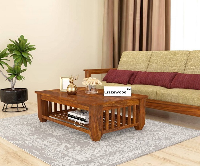 1. LIZZAWOOD Solid Sheesham Wood Coffee Table Best for Sofa Set Center Table