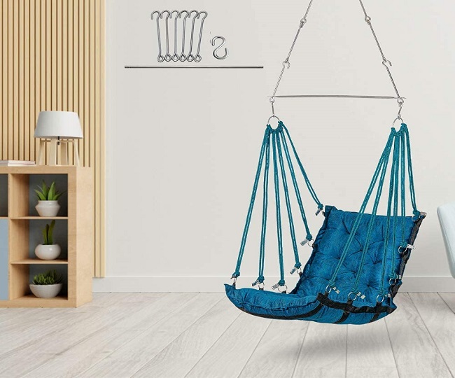 यह पाउडर कोटेड आयरन फ्रेम के साथ आती है। जो 120 किलो तक के वजन को होल्ड कर सकती है। यह सिंगल सीटर झूला स्टैंड में आपको कुशन भी मिलता है। Hanging Swing Price: Rs 2,299.